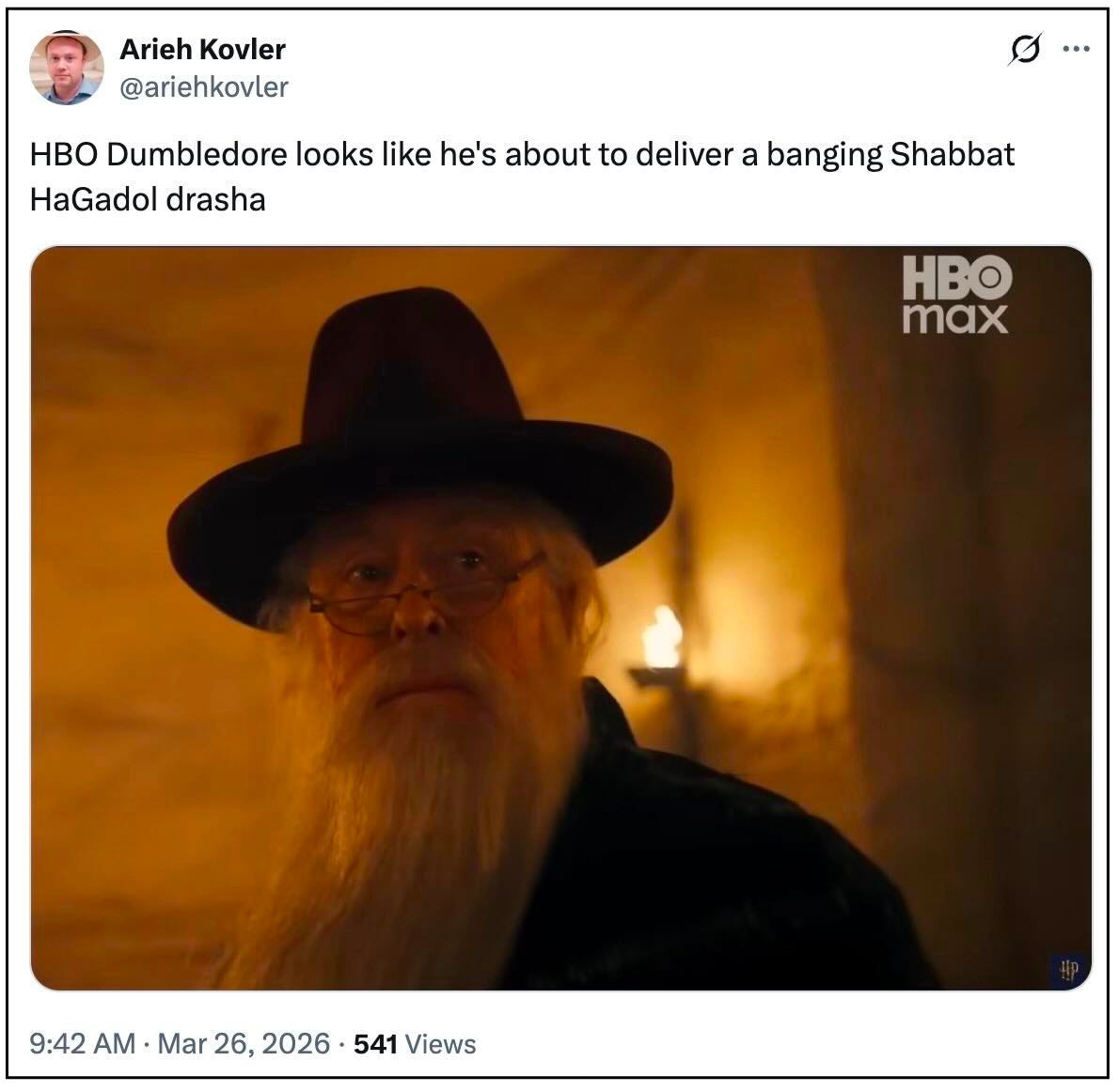 And finally, let’s end with something lighter. Many in the Jewish social media whirl flagged the appearance of Dumbledore in the new HBO Harry Potter series.